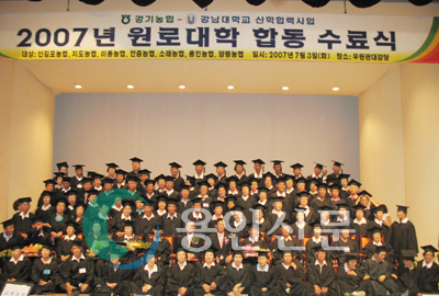 이동농협(조합장 박찬홍)은 지난 6일 강남대학교에서 산학협력 원로대학과정 합동수료식을 가졌다. 이번 원로대학은 농협 경기지역본부와 강남대학교가 함께한 사업으로 올해 처음 이동농협을 비롯 경기지역 내 7개 농협이 참가해 지난 6월부터 한달간 개최됐다.