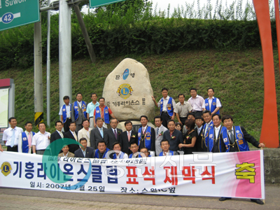 국제라이온스 354-B지구 기흥라이온스 클럽(회장 박만섭)은 지난 25일 기흥구 수원IC 앞에서 ‘기흥라이온스 클럽 표석’제막식을 개최했다. 이날 행사에는 서정석 용인시장을 비롯해 유재석 354-B지구 총재, 최연규 3지역 부총재 등 라이온스 클럽 회원 및 시 관계자 등 30여명이 참석했다.