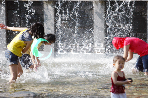 더위가 한풀 꺾이고 선선한 바람이 불기 시작한다는 처서가 지났지만 아직 날씨는 덥기만 하다. 더위를 이기지 못한 아이들이 행정타운 시의회 뒷편에 마련된 분수대에서 물놀이를 즐기고 있다.