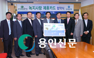경기농림진흥재단과 우리은행은 지난 23일 경기도청 국제회의실에서 김문수 도지사, 박영호 우리은행 부행장, 김덕영 재단 대표이사가 참석한 가운데 녹지사랑 제휴카드 협약식을 가졌다.
