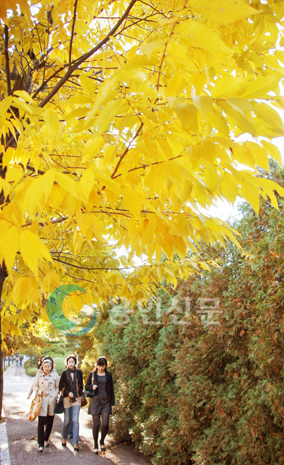 곱게 물든 형형색색의 나무들이 가을의 전령사가 되어 캠퍼스를 물들이고 있다. 가을을 걷는 학생들의 모습에서 계절의 설레임이 느껴진다. 사진은 지난 19일 용인대학교.