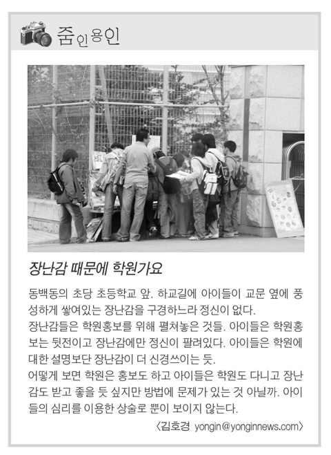 어떻게 보면 학원은 홍보도 하고 아이들은 학원도 다니고 장난감도 받고 좋을 듯 싶지만 방법에 문제가 있는 것 아닐까. 아이들의 심리를 이용한 상술로 뿐이 보이지 않는다.