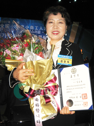 김보옥 (주)삼포실버드림 대표이사가 지난 20일 (사)한국소기업소상공인연합회 주최로 서울 올림픽공원 올림픽홀에서 개최된 2007 제2회 전국소기업소상공인대회에서 국무총리상 수상의 영예를 안았다.