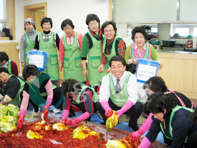신갈농협주부대학 총동창회(회장 전춘옥)가 한자리에 모여 김장 담그기 행사를 벌이는 자리. 기흥 지역 내 독거노인과 소년소녀 가장에게 전달될 사랑표 김장은 이들의 마음까지도 사랑표로 붉게 물들여 시종일관 손놀림이 즐겁기만 했다.