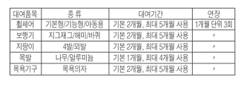 Q) 빌려주는 보장구 종류와 대여기간을 알려 주세요?