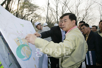 서정석 용인시장은 지난 17일 오전 6시 30분부터 8시까지 건설교통국장, 도로과장, 용인지방공사 사장 등 20명의 도로 관련 담당자들과 함께 도로개설 사업공사 현장 3곳을 방문했다.