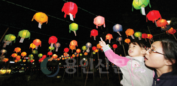 보살님들의 손끝에서 피어난 오색 연등이 꽃밭을 이루었다. 불기 2552년 부처님 오신 날을 앞둔 지난 25일 처인구 김량장동 통일공원을 찾은 시민들이 다양한 색상의 봉축 연등 아래서 즐거운 시간을 보내고 있다. 각자 소망과 자비의 기원을 담은 연등이 도심 야경속에서 시민들의 눈길을 끌고 있다.