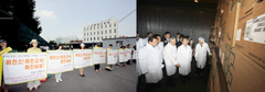 새로운 미국산 수입 위생조건이 발효됨에 따라 지난해 10월 이후 9개월 만인 27일부터 미국산 쇠고기에 대한 검역이 재개됐다. 기흥구 농서동의 강동 제2냉동창고 앞 도로변에서 민주노총 회원들과 시민들이 검역반대를 외치며 출하를 막기 위한 시위를 벌이고 있는 가운데 한승수 국무총리가 지난 27일 양지면의 한 냉동창고를 방문해 검역 과정을 지켜보고 있다.