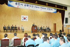 교통사고 예방을 위한 ‘용인시 교통사고 제로비전 선포식’이 지난 10일 처인구 용인초등학교 대강당에서 개최됐다.