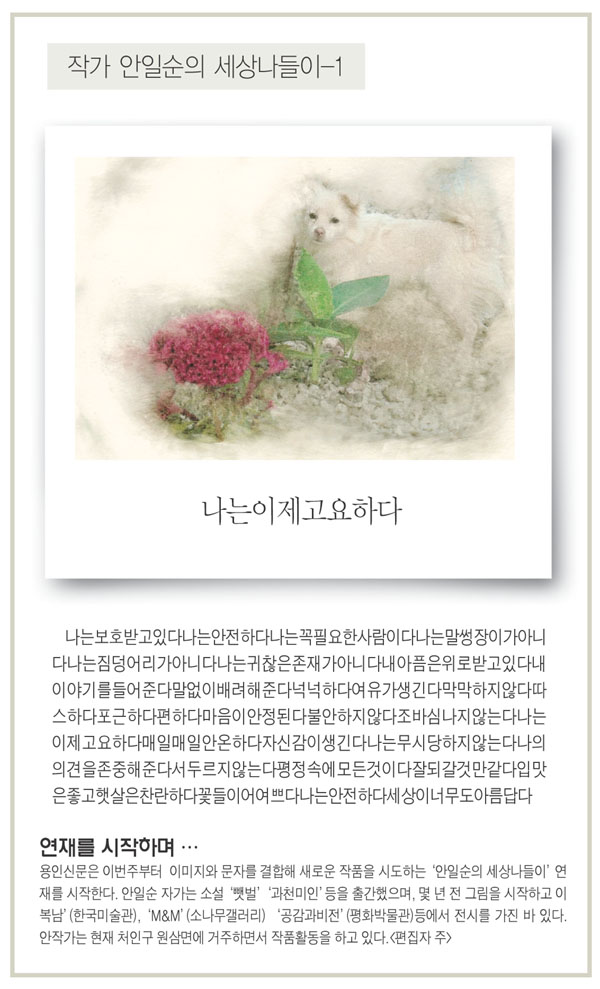 작가 안일순의 세상나들이_1 : 나는 이제 고요하다