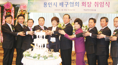 지난 19일 처인구 백설컨벤션웨딩홀에서 이우현 용인시체육회 수석부회장과 체육회 산하 가맹단체장 등 지역 인사 및 배구협회 선수 등 300여명이 참석한 가운데 ‘용인시배구협회장 취임식’이 열렸다.
