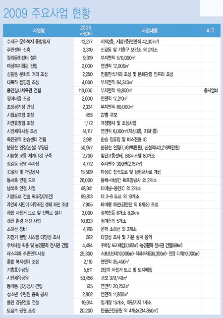 즉, 지난해 세입 중 지방세의 경우 당초 추계치의 99%가 징수됐지만, 죽전과 동백, 흥덕지구 등 대단위 개발사업의 완료와 겹친 경제악화로 인해 세외수입 징수가 감소했다는 설명이다.