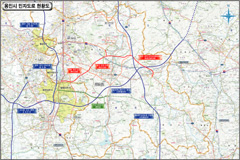 시에 따르면 △영동고속도로 확포장 공사 및 제2경부고속도로와 제2외곽 순환선의 시 중심부 관통 △기흥~양지구간의 민자 도로 △신갈 우회도로와 연계된 삼가~대촌 간 우회도로 △동탄~이동 간 국지도 84호선 △서울~영덕~오산 간 도시고속도로 △국도 45호선과 연계된 57호 국지도 광주~마평간 민자도로 등이 동시 다발적으로 추진되고 있다.