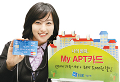 기업은행이 아파트 관리비를 할인하는 신용카드인 ‘마이 아파트 카드’를 내 놓았다. 관리비를 신용카드로 결제하고 할인까지 받을 수 있는 장점이 있지만 일정한 조건을 갖춰야 한다.