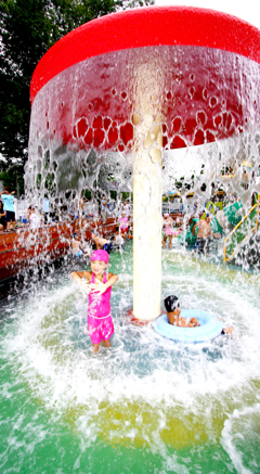 입추(立秋)를 하루 앞 둔 지난 6일 가을이 문턱까지 왔지만 더위는 수그러들 줄 모른다. 한 낮 기온이 30도를 웃도는 가운데 시원한 놀이터를 찾은 동네 어린이들이 물놀이를 즐길 수 있는 놀이터에서 신나게 뛰어놀며 더위를 쫓고 있다.