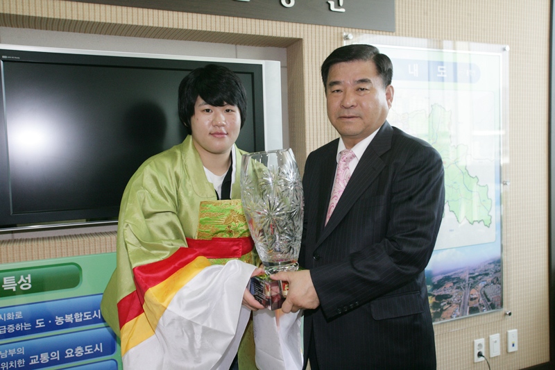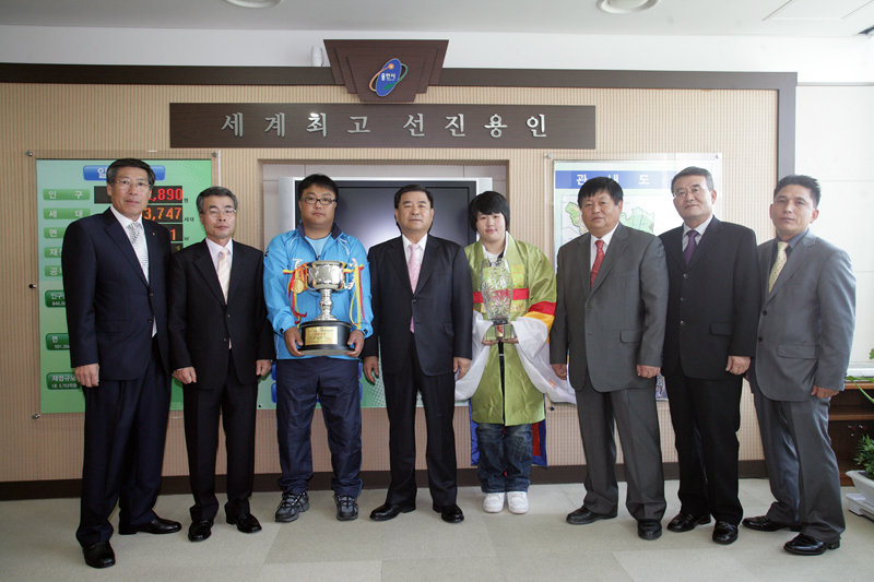 용인시는 지난 24일 시장실에서 2009 도지사배 경기도씨름대회 종합1위를 차지하고 대회 9연패를 달성한 용인시민대표 씨름선수단을 접견하고 우승컵 봉납식을 가졌다.