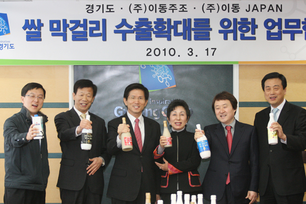 경기도는 지난 17일 일본 내 막걸리 시장의 80%를 점유하고 있는 ‘㈜이동JAPAN’, 국내 유력 막걸리제조업체인 ㈜이동주조와 100% 경기미 막걸리 일본 수출을 골자로 하는 업무협약을 맺는다고 밝혔다.