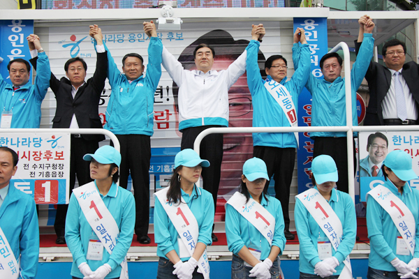 이날 유세에는 이우현 전 용인시의회 의장과 정찬민 전 경기도당 대변인, 조정현 전 중앙당 기획실장, 박병우 전 민주평통 용인시지회장 등 전 용인시장 예비후보들이 대거 참석, “용인지역 발전을 위해 한나라당 오세동 후보를 꼭 성원해 달라”고 지지를 호소했다.