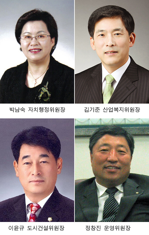 자치행정위원장의 경우 각각 재선의 여성의원인 한나라당 지미연 의원과 민주당 박남숙 의원이 격돌했으나, 지 의원 10표, 박 의원 13표, 무효2표로 박 의원이 선출됐다.