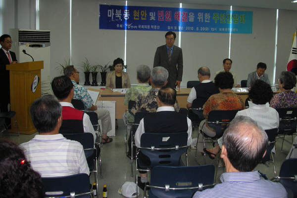 한나라당 박준선 국회의원(용인기흥)은 지난 20일 기흥구 마북동 주민센터에서 ‘마북동 현안 및 민원해결을 위한 주민간담회’를 개최했다.