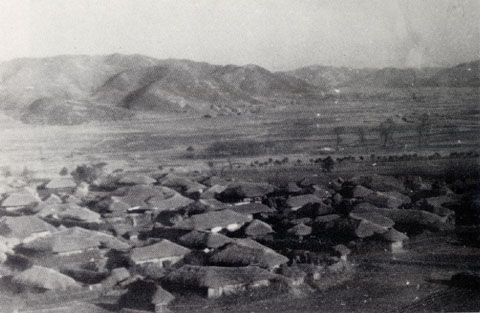 새마을운동 시작 당시의 오토바이 발대식. “멋지고 살기 좋은 용인을 건설하자”는 구호가 선명하다.