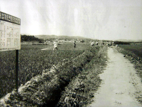 처음 통일벼가 들어오기전 남사면의 시범단지 모습으로 당시 녹색혁명을 일으킨 통일벼는 보리고개를 극복하고, 식량의 자급자족 시대를 열었다.