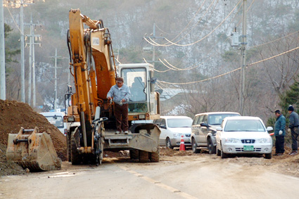 도 건설본부에 따르면 국지도 57호선이 지나는 원삼면 사암리 곱든고개 일대가 그동안 산 정상에서 흘러내리는 빗물이 도로 위를 지나면서 결빙도로가 돼 겨울철에 특히 교통사고 다발지역으로 알려져 있다. 이에 따라 건설본부는 배수관로 공사로 결빙을 막고 교통사고 유발을 줄이고자 ‘사암리 배수시설공사’를 지난5일 O건설사에 발주하고 지난 10일 공사를 시작했다.