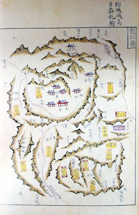 경위선표식으로 제작된 해동여지도 속에 수록된 지도, 관할 면과 강줄기 등이 잘 그려졌고 봉수터를 표시 하였다. 김정호의 청구도와 제작기법이 비슷하다.