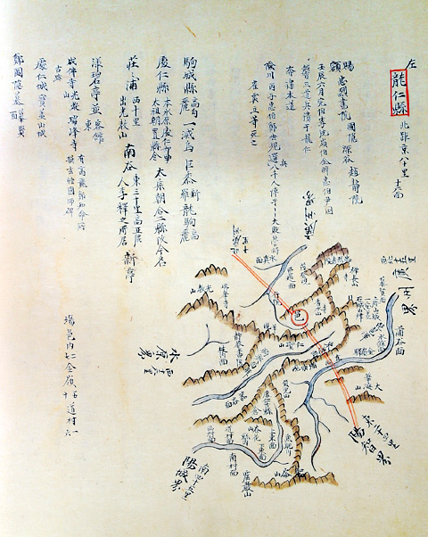지도를 개략적으로 그렸기 때문에 소략하고 지도 상단에 지리지적 요소를 적었다. 사액서원으로 충렬서원과 심곡서원이 있다고 적었는데 지도에는 심곡서원이라 적지 않고 정암서원이라고 하였다. 강줄기는 자세한데 도로는 대로만 두줄로 그렸다.