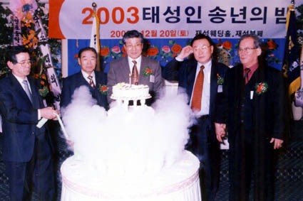 지난 20일 태성총동창회는 2003 태성인 송년의 밤을 재성부페에서 개최했다. 이날 행사에는 동문 300여명을 비롯 각급 기관장들이 참여해 동문들의 힘을 한데 모으는 계기를 마련했다. 이날 이원찬 총동문회 회장은 “태성동문회관이 건립되면 동문들의 구심점이 되어 더욱 발전하는 동문회가 될 것”이라며 “태성의 새역사를 새롭게 쓰는 데 동참해 달라”할 것을 당부했다.
