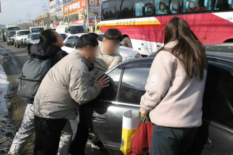 지난 5일 오후 1시 25분께 명지대 앞 사거리에서 세명의 여학생들과 서너 명의 성인 남자들이 멱살을 잡고 싸우는 일이 일어났다.