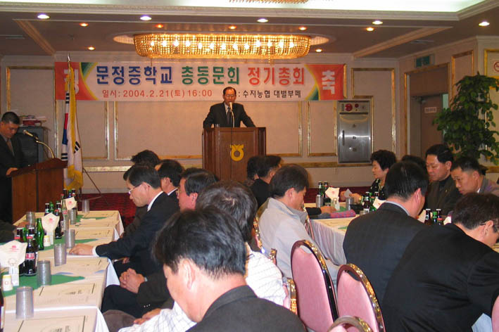 문정중학교 총동문회는 지난 21일 수지 대벌부페에서 김필배 수지출장소 소장을 비롯, 이보영의원, 이우현(신봉동)의원, 김순경 의원 등 동문 200여명이 참석한 가운데 ‘2004년 정기총회’를 개최했다.