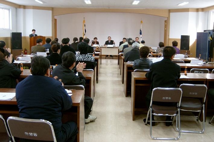 이어 관련단체장의 해명을 들어야 한다며 강력히 요구, 자유총연맹관계자가 회의 도중에 들어와 주민들의 항의에 따른 답변에 나섰다.