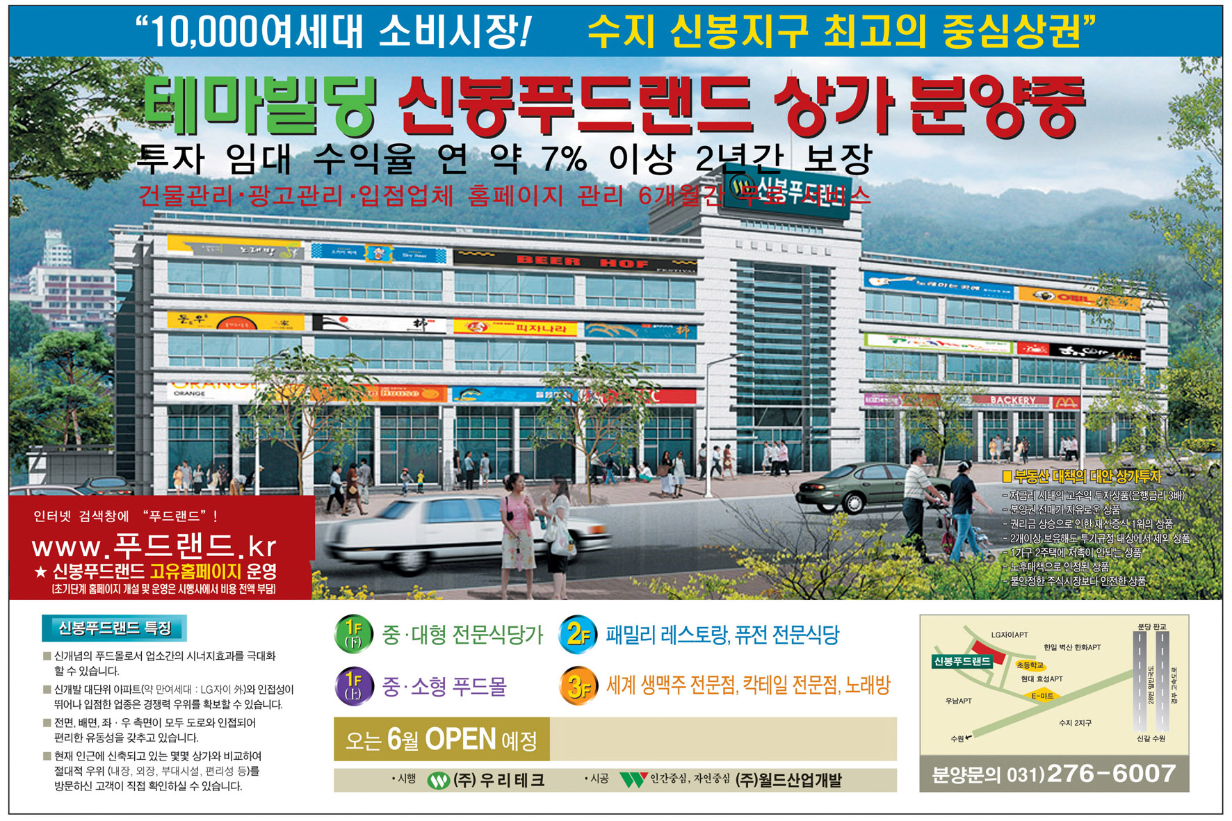 월드산업개발이 맡고 있는 음식전용상가 신봉푸드랜드는 다른 일반 분양상가와는 달리 먹거리 문화의 새로운 패러다임을 보여주고 있다.