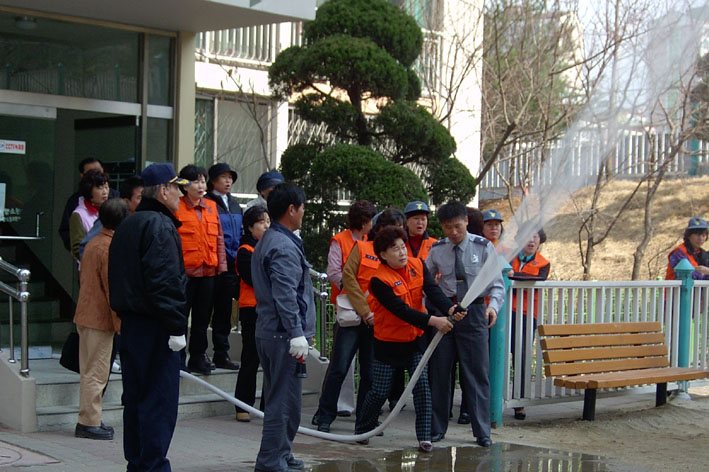 양동욱 소장이 직접 30여명의 주민들에게 소화기 사용법, 가정 화재 예방법, 유사시 피난 대피요령 등에 대해 이론교육과 실무 교육을 지도해 주민들로부터 큰 호응을 얻었다.
