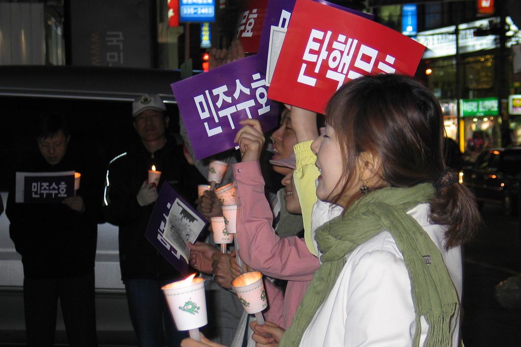 http://cafe.daum.net/antitanhaekyongin)회원들은 지난 30일 오후 5시부터 10시까지 김량장동 국민은행 앞에서 대통령 탄핵에 반대하는 촛불문화제 행사를 가졌다.