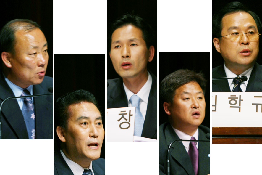 제17대 총선 용인 갑선거구에 출마하는 5명의 후보들은 6일 문예회관에서 본지 용인신문과, 용인시민신문, 경기케이블TV네트워크(KCN) 등 3개 언론사와 용인시민단체 모임인 용인시민사회단체연대회의(용인YMCA, 용인환경정의, 한국CLC부설 이주노동자인권센터, 느티나무문화재단)의 공동주최로 `$$`제17대 국회의원 후보자 초청 토론회`$$`를 가졌다.