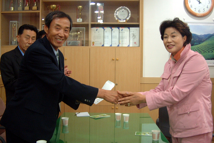 지난 22일 봉사단체 월드회(회장 김길례)가 “어려운 이웃들 돕는데 써달라”며 중앙동사무소를 찾아 중앙동사랑회에 100만원을 선뜻 기탁했다.