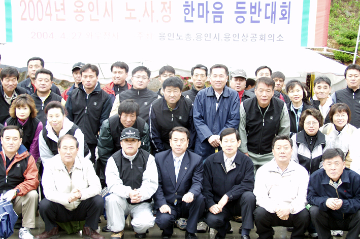 지난 달 27일 해곡동 ‘와우정사’에서 열린 ‘2004년 용인시 노·사 ·정 등반대회’에 참석한 120여명의 노동자와 경영인, 정치인들은 비가 내리는 궂은 날씨에도 불구하고 연화산을 등반한 후 회식자리를 함께했다.