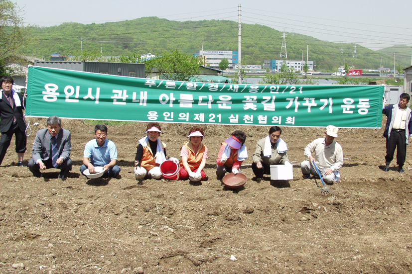 용인의제21 의장단 및 농축산분과 이몽덕 위원장, 용인시의회 심우진 의원 등 30여명의 위원들이 참석한 가운데 진행된 이날 행사에서 총 4Kg의 코스모스 씨가 뿌려졌다.