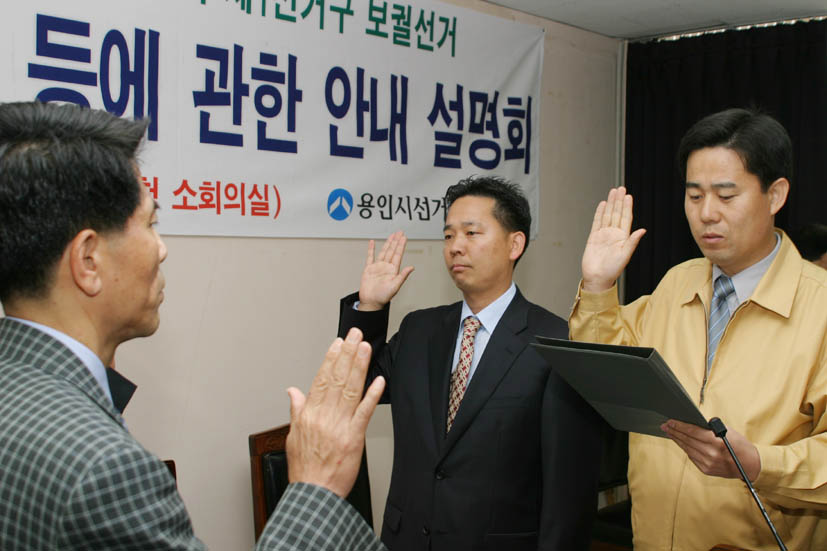 이날 설명회는 우상표 열린우리당 후보와 신재춘 한나라당 후보를 비롯한 관계자가 참석한 가운데 후보자 등록절차, 후보자가 할 수 있는 선거운동 방법 등 관련법에 대한 설명으로 진행됐다.