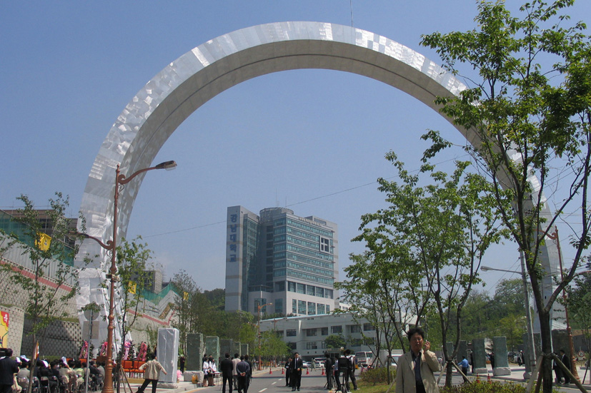 이왕용, 허욱 강남대 교수의 설계로 13억을 들여 제작된 정문은 아파트 10층에 해당하는 28.5m 의 높이에 40m 넓이를 자랑하는 웅장한 원형 모양으로 거대한 우주와 태양을 상징한다.