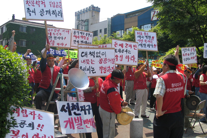 서천택지개발지구대책위원회(위원장 김봉화)와 흥덕택지개발지구대책위원회(위원장 이종설) 주민들 100여명은 지난 21일 용인시청 앞에서 합동 항의집회를 열고 용인시에 토지보상 및 이주대책 현실화를 요구했다. 이는 지난달 30일 첫 합동 집회에 이어 두번째로 서천택지개발지구와 흥덕택지개발지구 세입자들이 각각 개발시행사인 대한주택공사와 한국토지공사에게 이주대책 및 지장물 보상 등의 현실화를 요구해왔다.