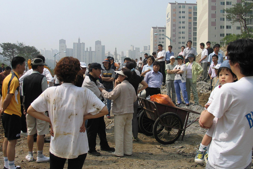 이 때문에 도로개통공사를 위해 토공?깎아놓은 곳을 성남시 측은 포크레인 등 중장비를 동원, 다시 쌓아올리고 주민들은 이 곳에 천막을 설치하는 등 진풍경이 벌어지기도 했다.