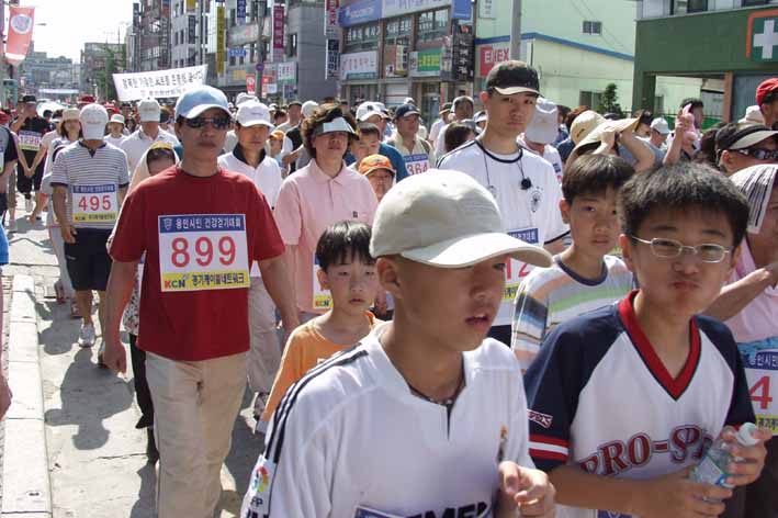 이정문 시장과 우제창 국회의원, 경기도의회 신재춘 의원 등이 참석한 가운데 진행된 이번 건강걷기대회는 용인청년회의소(회장 모연수)가 `$$`조국의 미래 청년의 책임`$$`이라는 슬로건을 내걸고 건강과 화합을 다지자는 취지로 열렸다.