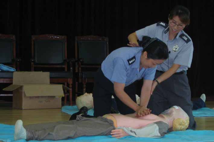 이날 교육은 용인소방서 송은정, 정남희 소방사를 강사로 초빙해 응급처치의 필요성과 기본인명구조술 등 기본이론 강의를 듣고 경찰관들이 직접 마네킹을 이용한 심폐소생술을 실습하는 순서로 진행됐다.