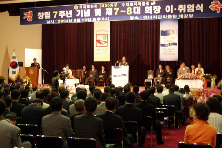 국제로타리 3600지구 수지로타리클럽은 지난 19일 수지에 위치한 에너지관리공단 대강당에서 창립7주년 및 제7․8대 회장 이․취임식을 가졌다.