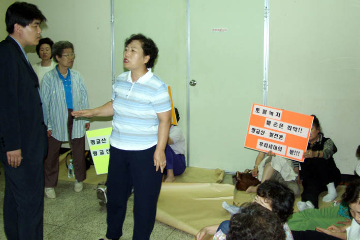 주민들은 “시에서 주민들의 의견은 완전히 배제한 채 심의위원을 선정하고 도시계획위원회를 열었다”면서 “심의위원들이 광교산을 직접 둘러보고 잘 알 때까지 도시계획위원회를 연기해 달라”고 요구했다.