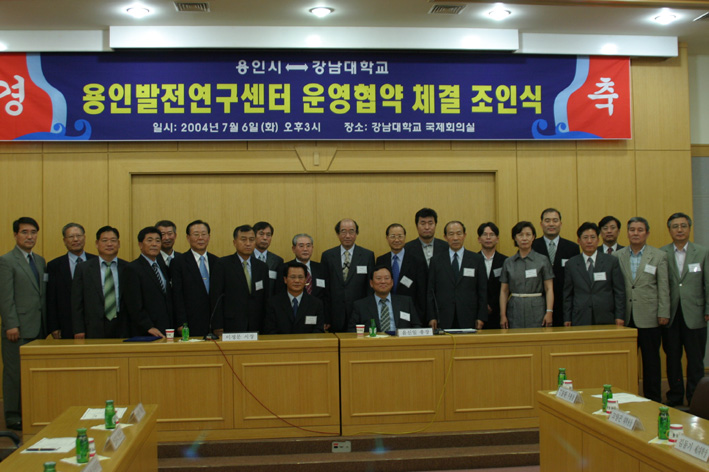 용인시는 지난 6일 강남대학교 우원관 국제회의실에서 이정문 시장과 윤신일 강남대 총장을 비롯한 관계자 70여명이 모인 가운데 관․학 상호 공동 발전을 위한 용인발전연구센터 운영 협약을 체결했다.