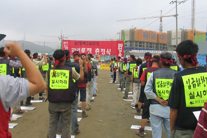 경기도건설산업노동조합 이광일 위원장은 “사측이 근로기준법 제54조에 명시된 주차수당(하루 8시간씩 6일간 일할 경우 1일간 유급휴가를 주는 제도) 등 근로자들의 기본권리를 외면하고 있다”면서 “사측은 노조의 정당한 단체교섭은 거부하고, 조합원들에게 압력을 넣어 조합탈퇴를 강요하고 있다”고 주장했다.